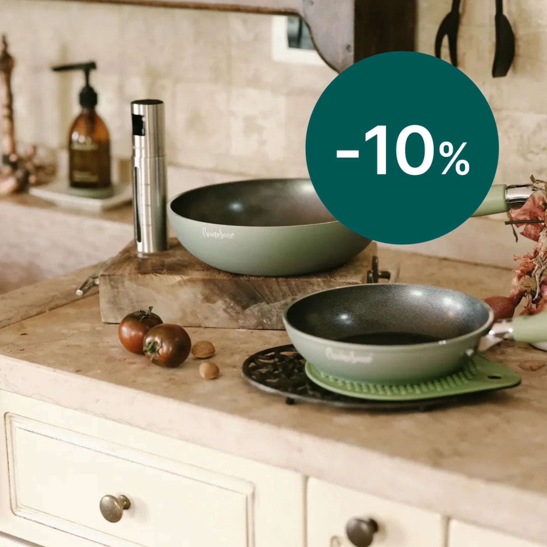 Compatibili con tutti i piani di cottura, inclusi gas e induzione, piastre elettriche, vetroceramica e forno.