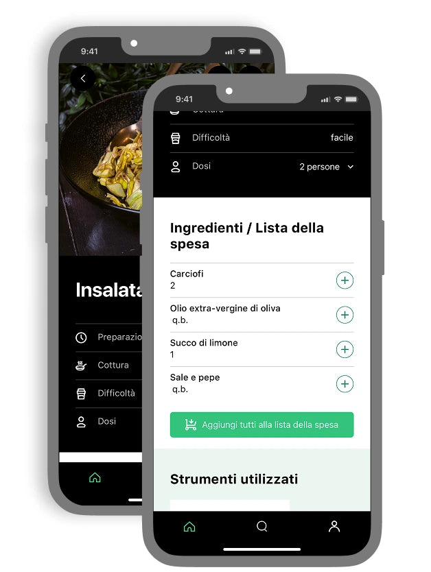 Cliccando sul pulsante "+" che trovi accanto all’ingrediente questo verrà aggiunto automaticamente alla tua lista della spesa.
