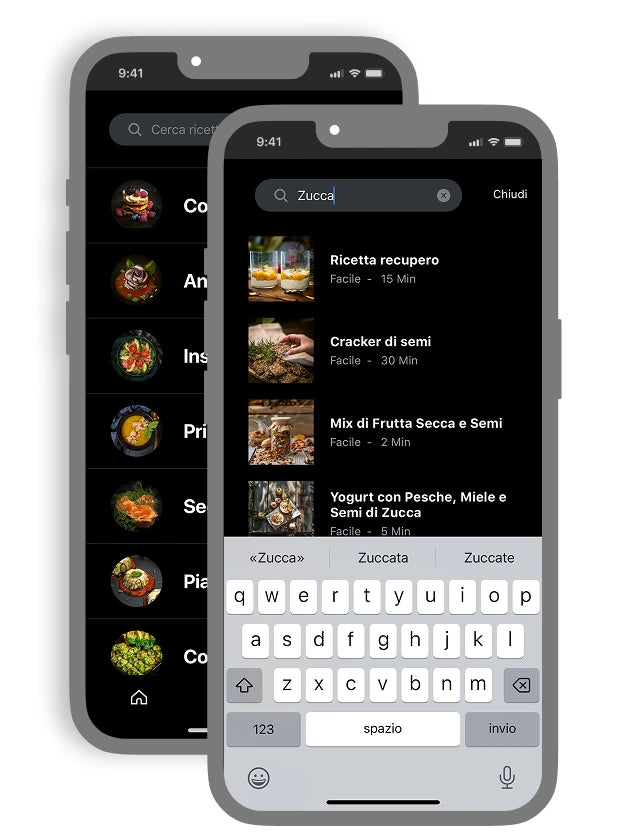 Utilizzando la barra di ricerca ti basterà digitare il nome dell’ingrediente per avere un elenco di tutte le ricette presenti nell’app che utilizzano quel prodotto.